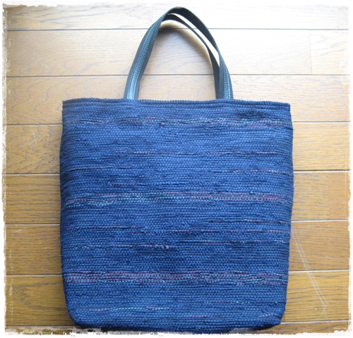 青くて小ぶりのかわいらしい裂織のかばん。 内 …