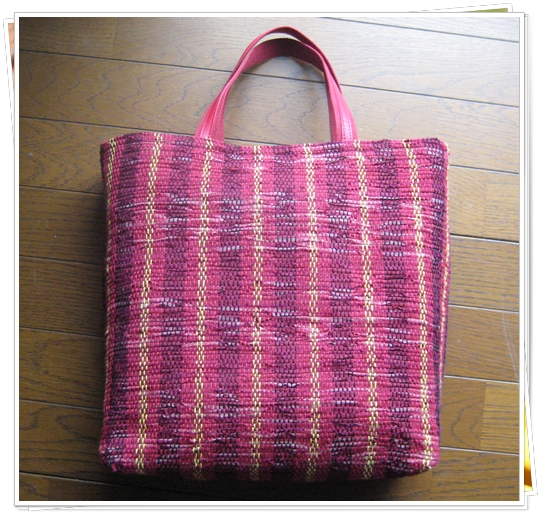 赤と青の小さな裂き織のかばん。 小さいけれど …